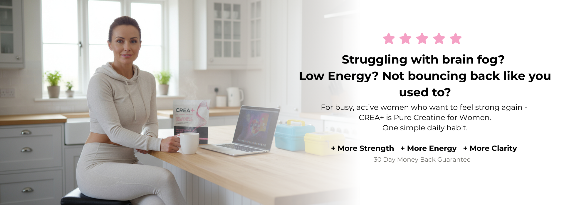 For busy, active women juggling work, family, and fitness, CREA+ fills the gap when energy dips and strength plateaus. It gives your body reliable, evidence-backed support it needs to lift heavier, think clearer, and feel more resilient.