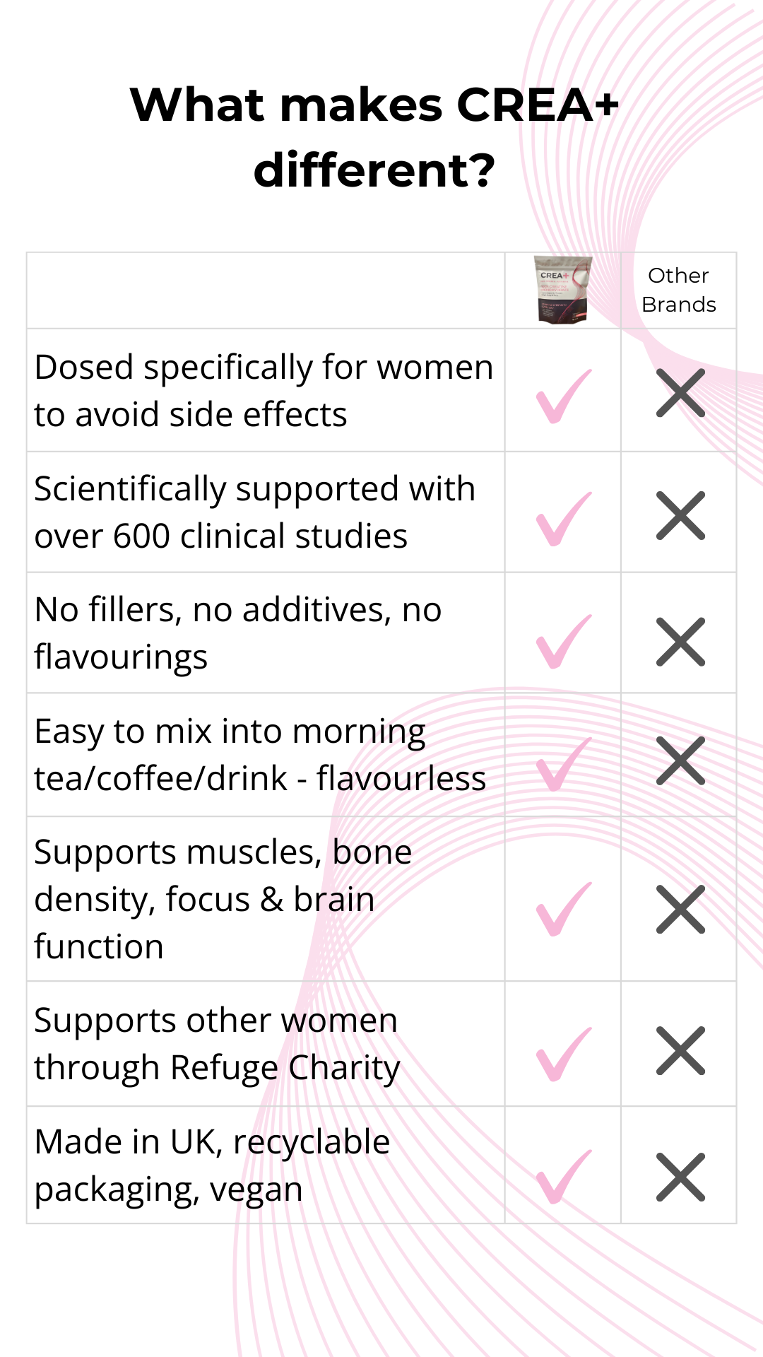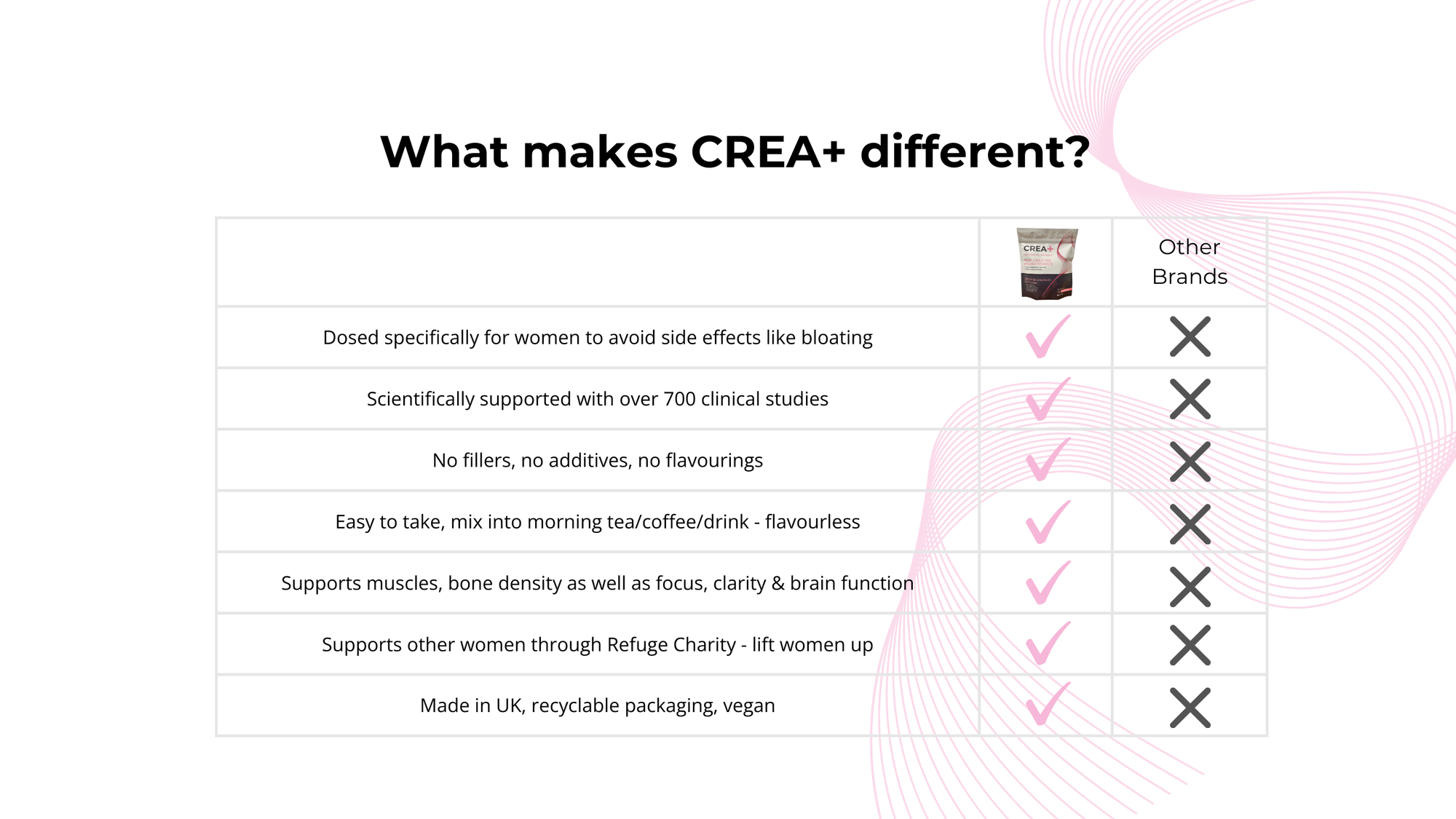 For busy, active women who want to feel strong again — CREA+ is pure creatine for women.